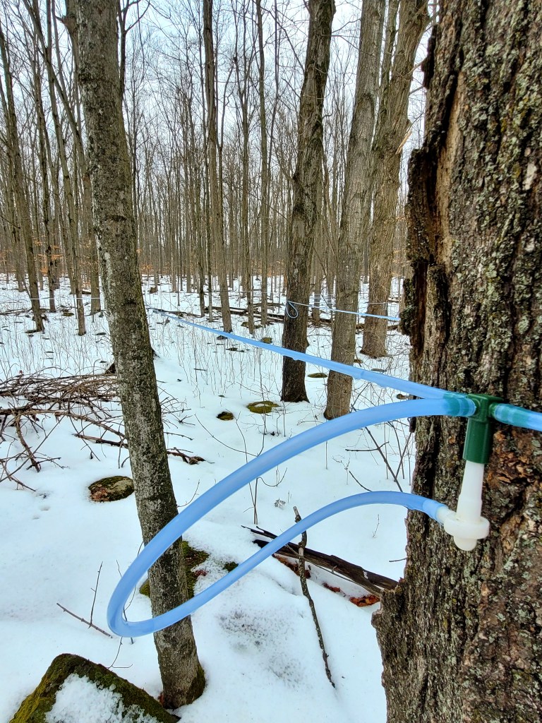 Vast network of lines to collect maple nectar from some of the oldest trees in Niagara Escarpment. I can smell delicious hot pancakes with fresh maple syrup while I type this part. A few pictures above from our excursion today illustrating the setup and spaghetti of tubes from where the nectar flows, when the time is right of course!