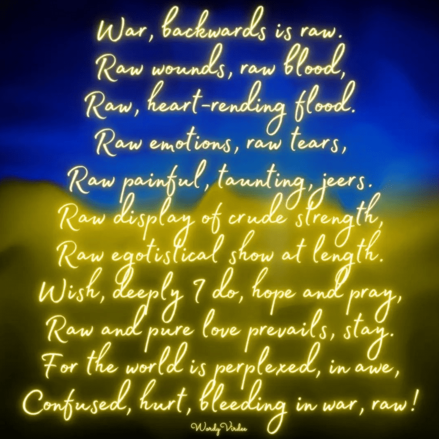 I conclude this note by sharing my sentiments on the currently ongoing conflict between Russia-Ukraine. I hope peace prevails sooner than later. Although inner wars with our vices are necessary to become better human beings, spilling another person’s blood in external war is always painful for all those directly involved or those indirectly observing humanity suffer. A few lines I wrote to contain my emotions and sentiments 🙂