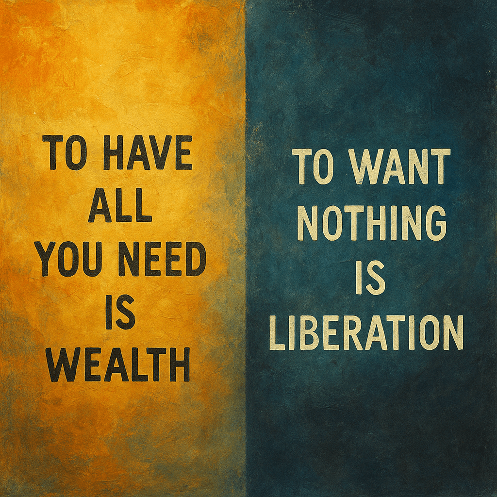 The Taoist notion of wu wei — effortless action — teaches that when one ceases to force, the natural current carries them further than striving ever could. To say, “I want nothing,” is to become like the river: flowing, giving, never hoarding. It is not a stagnant pool of resignation, but a living stream that nourishes simply because it is full.